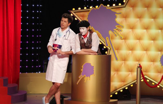 Та за неправильні відповіді навіть "зірок" можуть "замочити"! Фінальний раунд приносить або яскраві призи, або ж яскраву фарбу на обличчі сілебриті! Не пропустіть справжній "Мокрий зорепад" на К1!